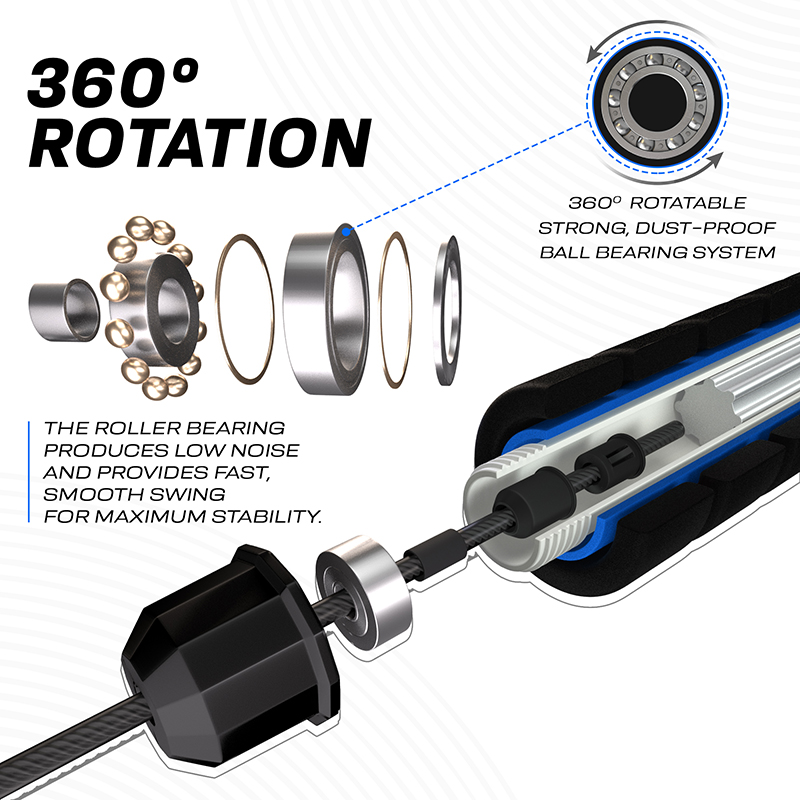 • 360° ROTATION- Strong, dust-proof 360-degree ball bearing system can withstand intense use while being put through the paces day after day. The roller bearing produces low noise and provides fast, smooth swing for maximum stability speed jump rope exercises. That's why it's favoured by pros in XFit and Decathlon training.